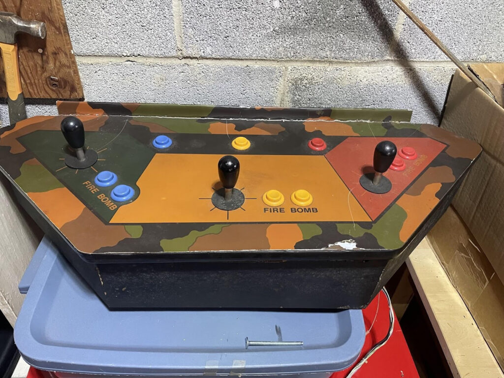 While Rick’s work on Bad Dudes was ongoing, I found another machine that piqued my interest – Capcom’s Mercs (which I am fairly sure is short for Mercurials) for only $250. The selling points were 1) It is a three player cabinet, 2) The monitor is 25 inches, compared to Golden Axe and Bad Dude’s 19 inch monitors, 3) The monitor is installed vertically so it would be great for shmups and some classics like Donkey Kong and Burger Time, and 4) Mercs is a good game. The downsides to this potential sale were 1) Though 3 players, each only had 2 buttons which would make many 3 button games inaccessible, 2) The MiSTERcade could not take 3 controllers without buying an expansion board, and 3) The seller was 90 minutes away and in an unpopular state.