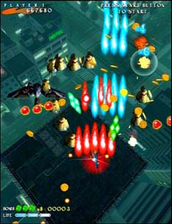 I enjoy the game play mostly because of the different ships. Seven different characters are offered, and each has a unique standard shot, two variations of a unique uber-shot, and a unique bomb. Besides all of the firepower options, the game encourages you to get as close to enemy bullets as possible (without dying) by making your standard weapon stronger any time a bullet skims your character (they call this buzzing in the biz).