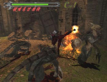 The biggest problem is the camera system. It’s exactly like the one found in Code Veronica; full 3d environments with fixed camera angles that move, zoom and pan on their own. You can figure out where the changes will occur, but that’s the only control you have over it. Some of the camera angles are just bad; how is looking at Dante’s front going to help us see enemies? The bad angles are commonplace, but not problematic enough to ruin things. For me, the larger issue is how they constantly change. You could be in the middle of an intense battle, only to move a few feet in the wrong direction and find the camera is now zoomed out so far that you can’t see your target, or it shifts to look in the completely opposite direction so your controls are reversed.