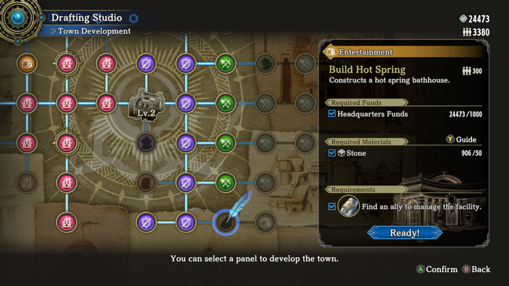 While it makes for a reasonable setup, Hundred Heroes never really veers far from “what you would expect.” This could be a weakness or a strength, since ECHH is explicitly designed as homage to, and iteration upon, a specific series. Some additions feel so natural – for example, gathering materials for construction of buildings in your HQ, which dovetails into a guild that does gathering for you – that it’s easy to not notice that it’s a new feature. Everything feels like an evolution, but nothing feels revolutionary.