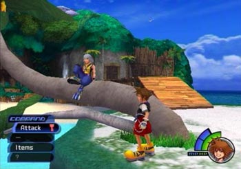 There are a few things I have to give the game props for. The first is Donald and Goofy. People complain about your two party members all the time, but they’re really a godsend. Sure, I rarely know what it is that they’re doing at any given time. But when I turn around and see enemies being splattered on Goofy’s shield, I really don’t care. They’re getting the job done. The thing about your party members is that they don’t die; they just get knocked out for a minute. That means you can let them fight, never heal them, and let them polish off any straggling enemies. Tired of them using potions randomly? Then stop giving them any. Neither of your pals is entirely smart, but seeing as you can theoretically beat the game with just Sora, a couple free kills and some cannon fodder is welcome.