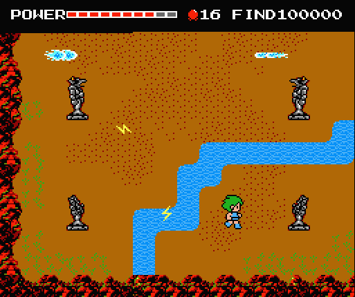 There are some structural tweaks that ultimately do not add much to the game. An opening village with fetch quests and terrible pixel art greet you upon starting this version of Golvellius. Some other attempt at adding plot and/or characters (who happen to be gods I think) was made – instead of only old women asking you to deliver things to each other (the same old women who are also the merchants), the Shin Maou has new deities asking you to do divine fetch quests. I suppose it’s an improvement though it’s hard for me to tell due to a nostalgic feeling of how the game “should be.” The last structural change added is this bizarre multiscreen thing before the final boss rush, which is also new so you could say it’s the lastest change. In this pre-boss rush scenario, you must destroy four statues on a few screens that are keeping you out of Golvellius’ tower by standing still and lobbing lightning in your direction now and then.