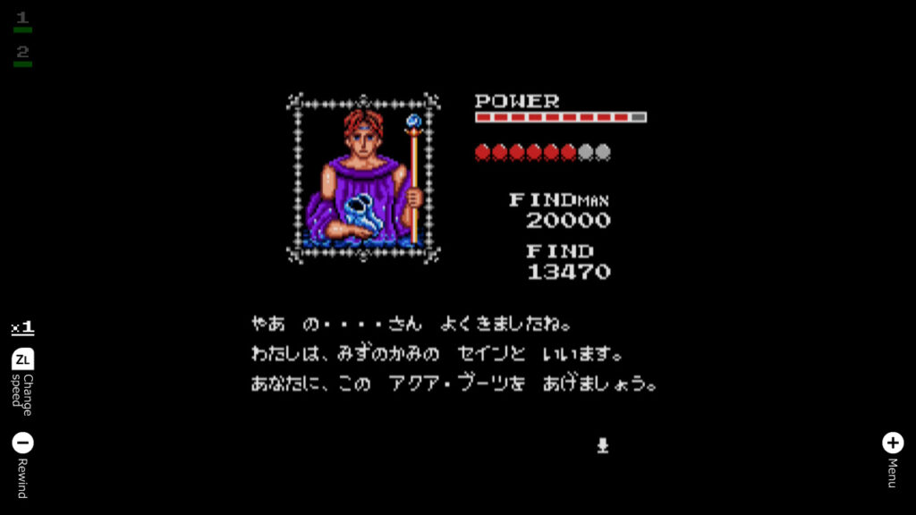 The real meat of all versions of Golvellius is buying items to increase the size of your purse, for some reason called bibles, and then buying health upgrades or items necessary to find the next boss like the aforementioned winged boots. Oddly, the amount everything costs in Shin Maou Golvellius is much smaller than the Master System game. This means less grinding ultimately, but also just less game because so much of the structure depended on figuring out which enemies gave a good amount of gold for a tolerable risk. Tied to this design is an NPC named Dina who will trade you money for health. This was a risky move in the Sega game but becomes an entirely pointless proposition in the new version that never requires more than a minute or two of slaying enemies to max out your gold.